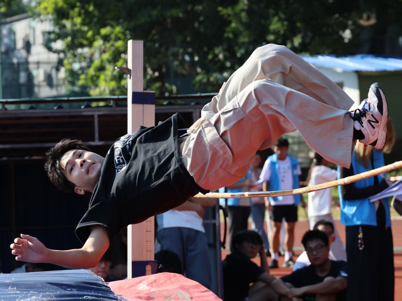声声枪响,比赛开始。田赛区域,跳高运动员越过横杆,不断超越自我极限;三级跳远处尘土微扬,展现跳跃之美。