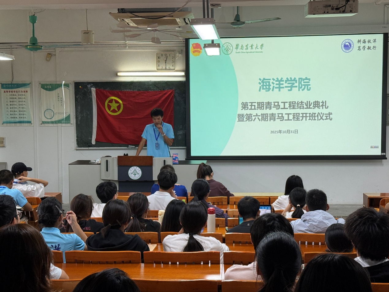 第五期青马工程结业典礼及第六期青马工程的开班仪式于2025年10月31日在教一305举行。 海洋学院团委书记苏婉老师,副书记张志锦同学及青马班的新老同学参与此项活动,本次会议由海洋学院团委组织部张鹏涛同学主持,仪式分六项进行。