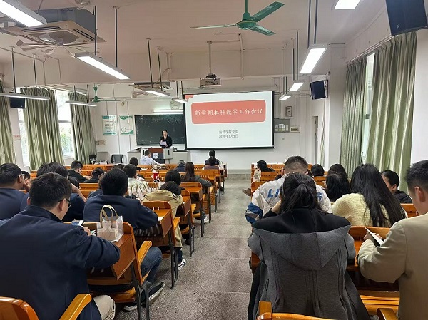 会议还对2025年度本科教学工作状态评估结果进行了通报。学院本次评估位列全校第8名,较去年有所下降,学院将以评估为抓手,查找短板,持续改进教学管理,提升育人质量,争取在2026年度本科教学工作状态评估中取得明显进步。