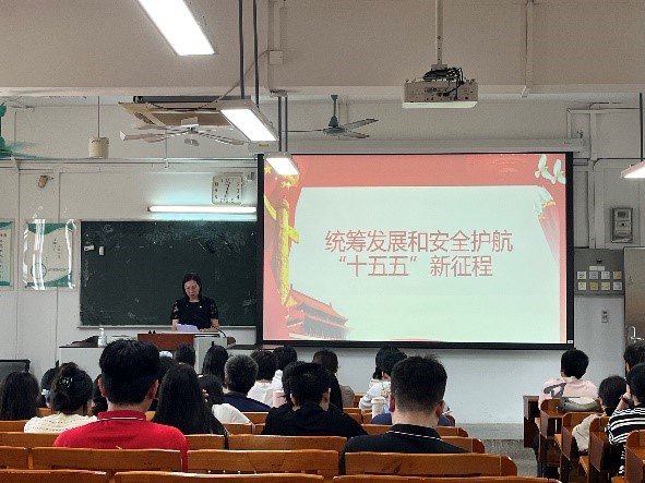 随后,欧阳倩兰副书记围绕“国家安全教育”和“政绩观学习教育”作专题党课。结合2026年“国家安全教育月”活动主题“统筹发展和安全,护航‘十五五’新征程”,她以《在守护国家安全中书写青春担当》为题,指出国家安全与青年息息相关。她提醒学员,社交平台晒涉密照片、点击钓鱼链接、盲目网络跟评、忽视安全常识等行为均可能引发安全风险。她强调,增强国家安全意识、掌握防范技能,既是学员的基本素养,更是时代责任。她希望学员主动学习总体国家安全观,将相关内容融入主题党日、团日、班会等活动,在反诈防骗、文明上网等方面当好网络空间的“安全卫士”,以青春担当守护国家安全,将个人奋斗融入强国建设和民族复兴伟业。此外,她还带领全体学员深入学习习近平总书记关于树立和践行正确政绩观的重要论述。